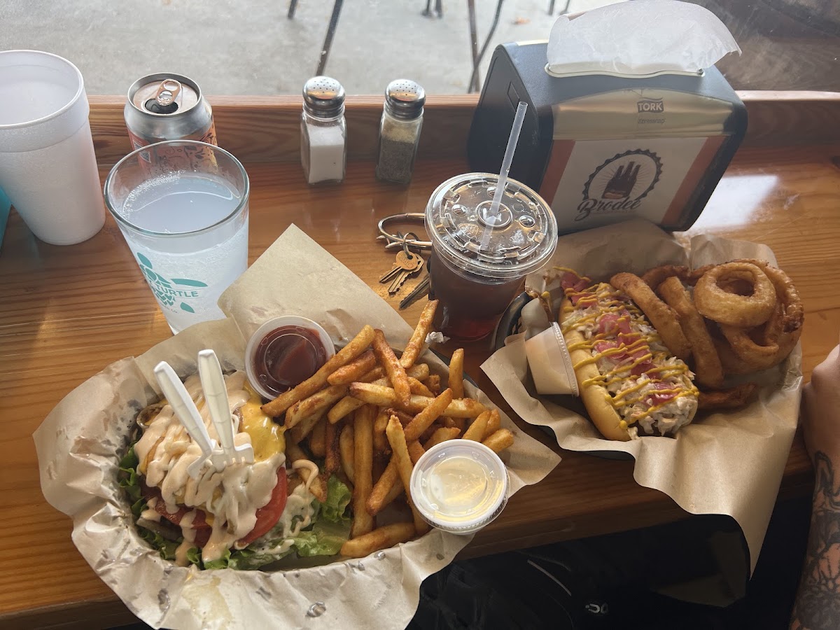 Walking into Brodee Dogs Brew House for the first time felt like stumbling onto one of those local spots people try to keep to themselves. I stopped by after a long drive through Brunswick County, hungry and curious, and within minutes it was clear this wasn’t just another diner trying to look cool. It felt lived in, relaxed, and genuinely welcoming. The place sits right at 103 A Village Rd NE, Leland, NC 28451, United States, which makes it an easy stop whether you’re local or just passing through on your way toward Wilmington.
